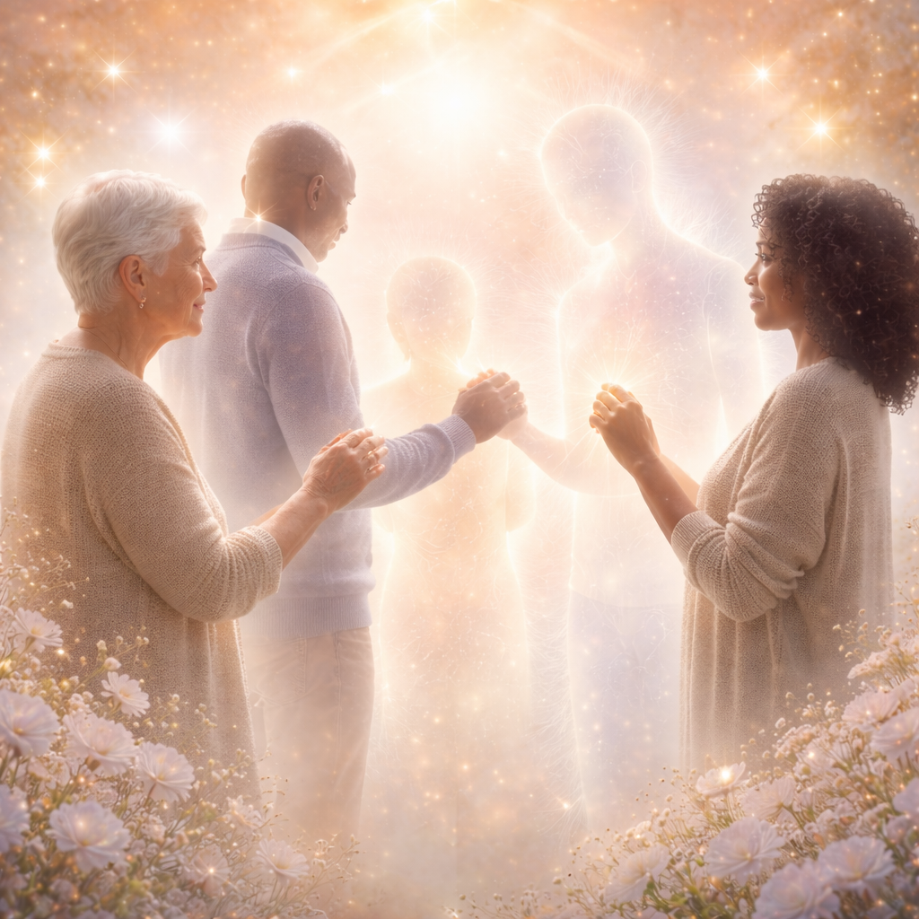 Un espace guidé pour te rapprocher de celles et ceux que tu aimes et qui ont quitté cette dimension.
