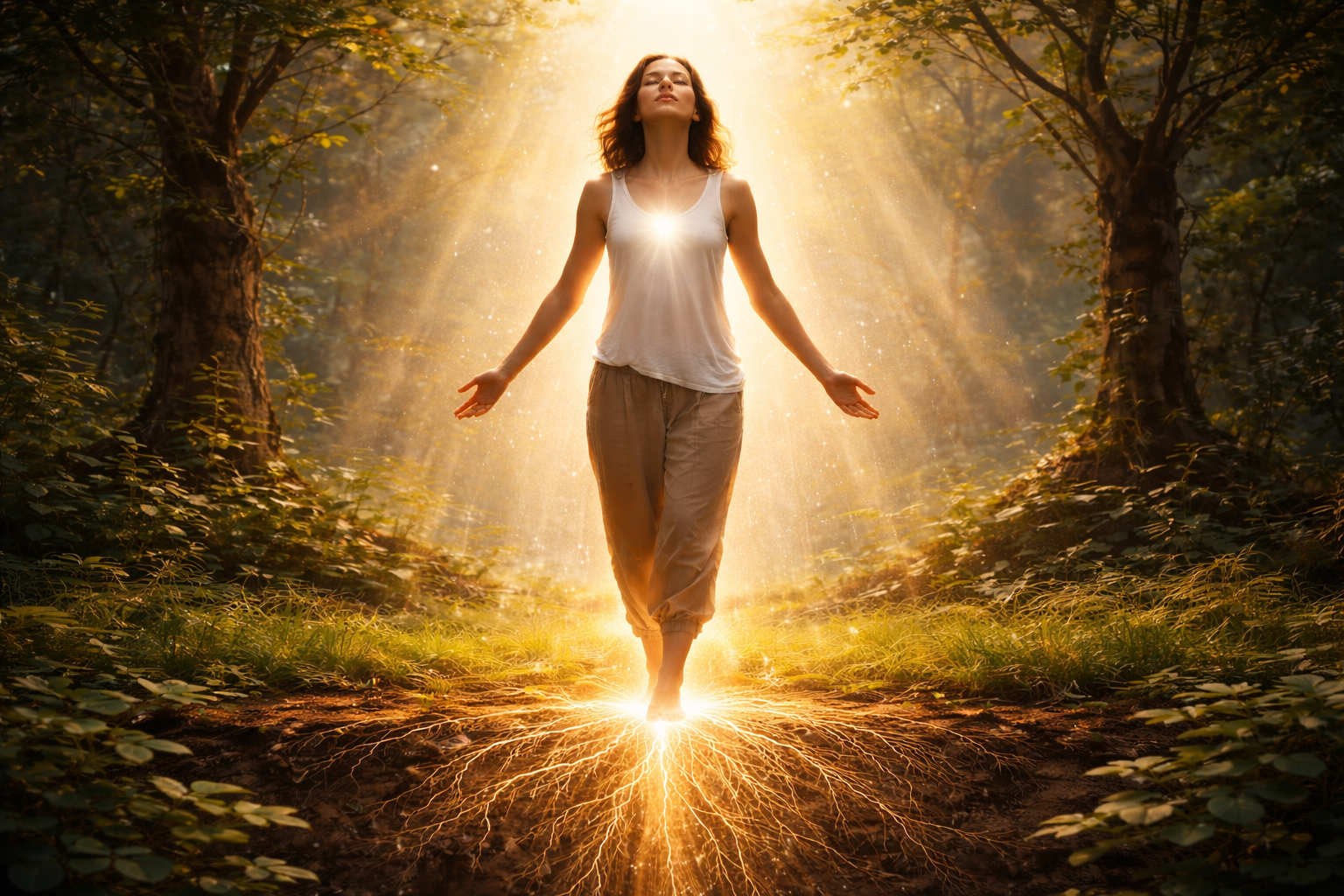 Laisse les énergies circuler dans ton corps, dans tes pieds, dans ton chakra racine. Ressens la connexion à la Terre.